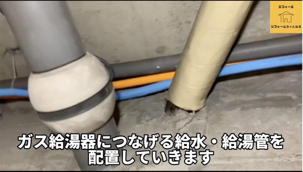 電気温水器を撤去したあとは、ガス給湯器へつなぐための給水管・給湯管の仕込みに入ります。