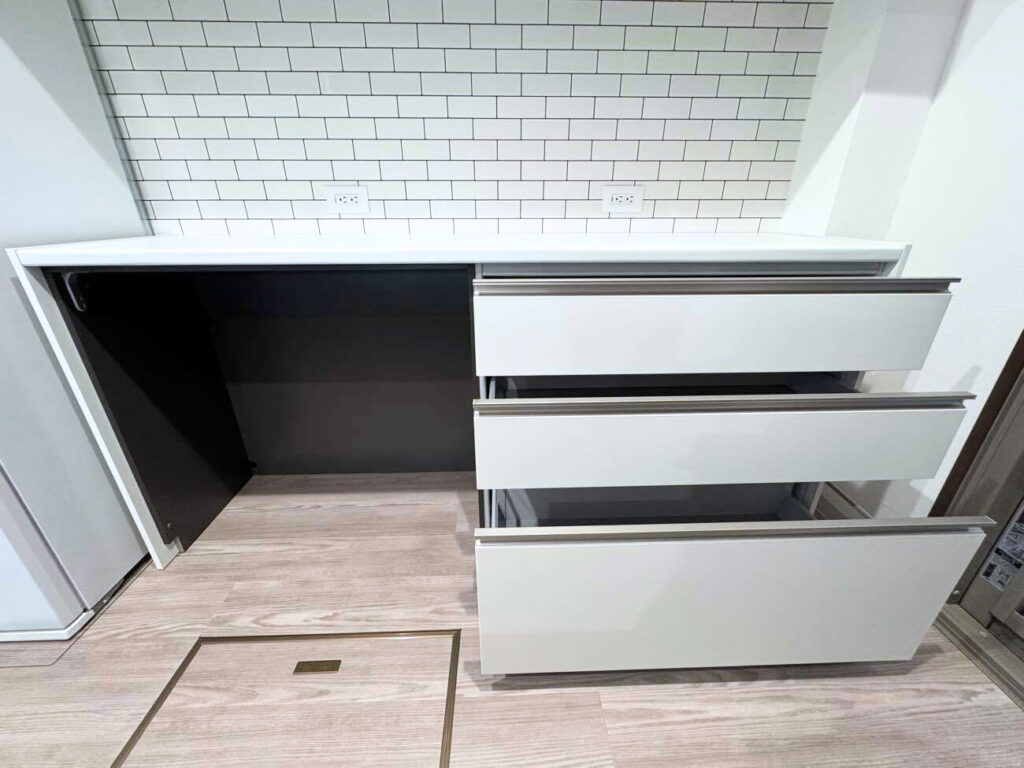 ハイバックカウンターにすることでコーキングなどのつなぎ目や段差をなくし、手入れがしやすい設計となっています。