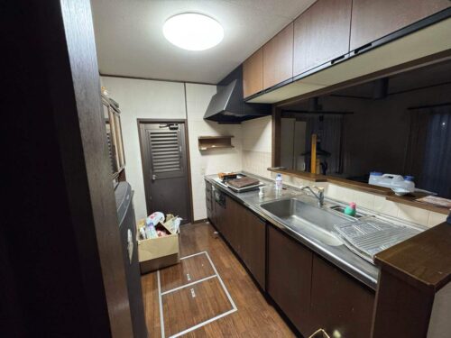 キッチンをより明るくするため、上部の壁を取り除き、勝手口の扉も新しく交換予定。