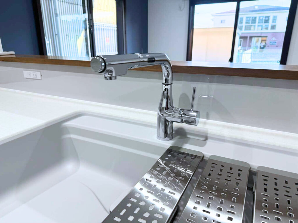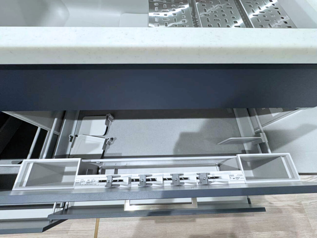 さらにシンクに2段の折りたたみのプレートが設置されており、汚れやすい作業や調理器具の一時置き場として使える工夫が施してあります。