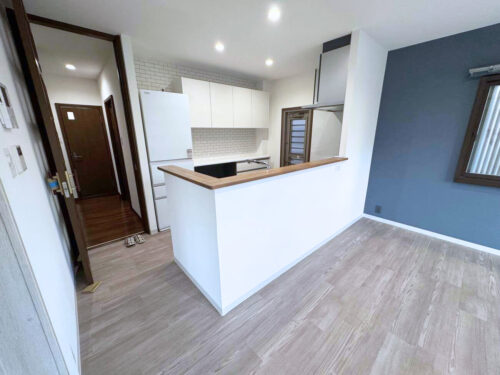 壁の撤去により光が届くようになり、明るい色の床と壁で開放感のある空間になりました。