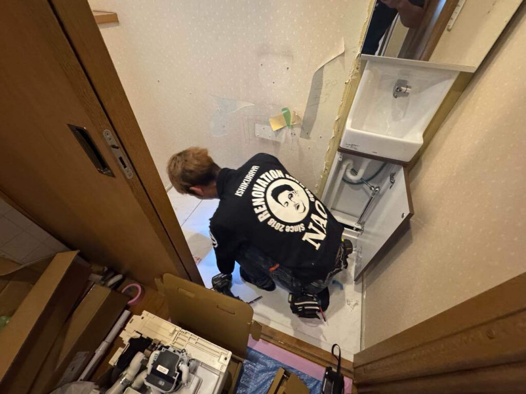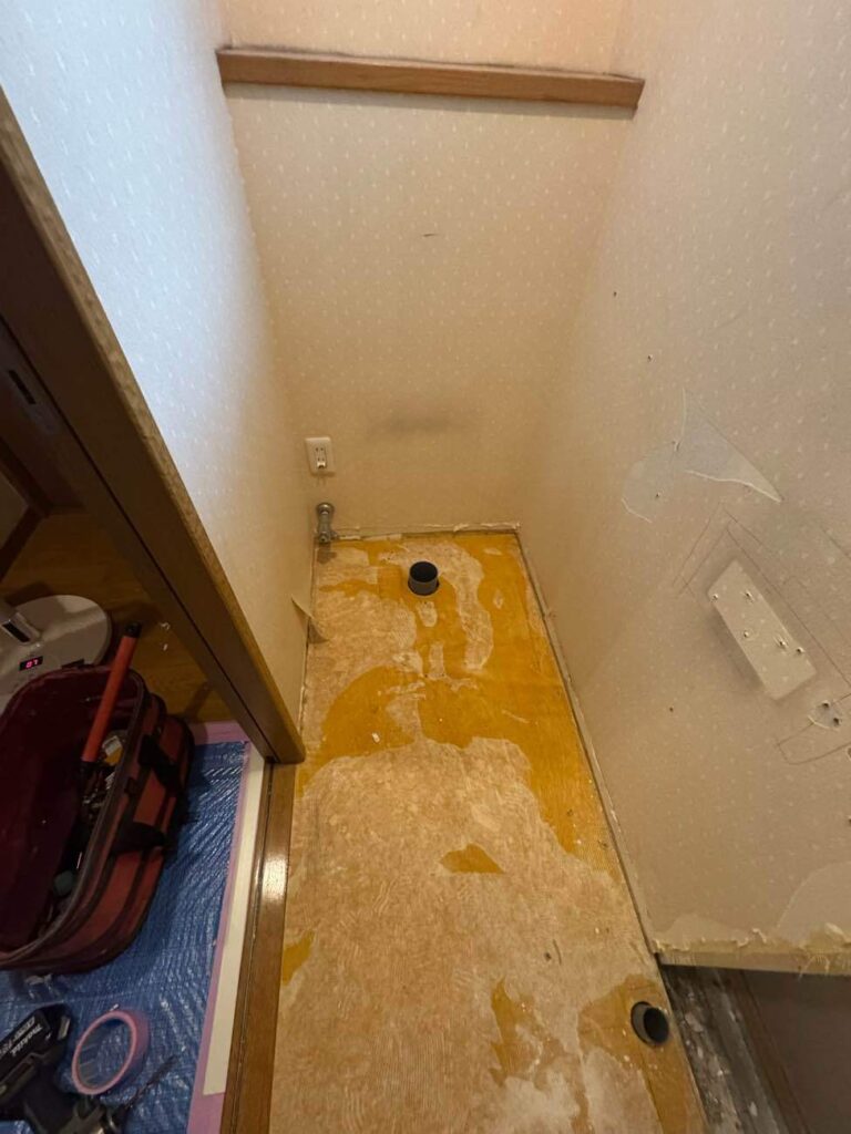 まずは、既存の便器と手洗い器を取り外し、床の張り替えからスタートします。