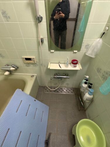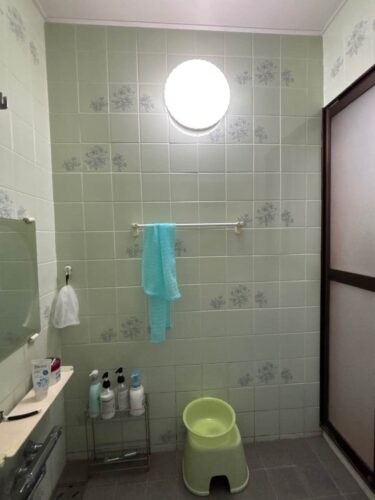 在来浴室(ユニットバスではない昔ながらの全面タイル張りの浴室)を、今回ユニットバスへとリフォームしていきます。戸建ての浴室はどうしても冷えやすいのですが、とくに在来浴室はタイルの影響もあり、より寒さを感じやすいのが難点です。