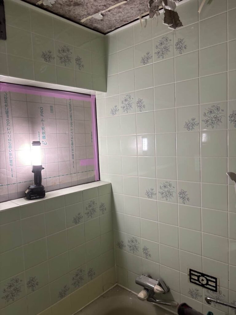 在来浴室(ユニットバスではない昔ながらの全面タイル張りの浴室)を、今回ユニットバスへとリフォームしていきます。戸建ての浴室はどうしても冷えやすいのですが、とくに在来浴室はタイルの影響もあり、より寒さを感じやすいのが難点です。