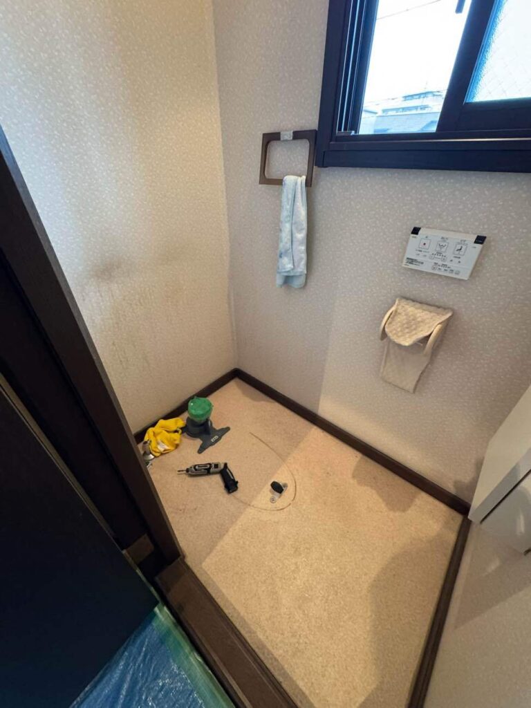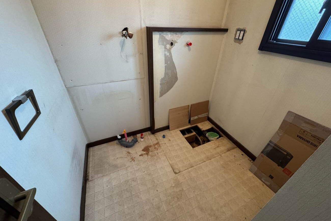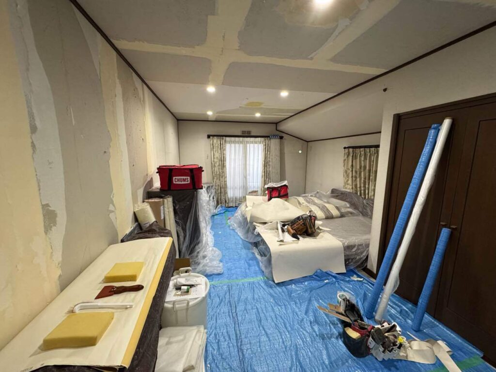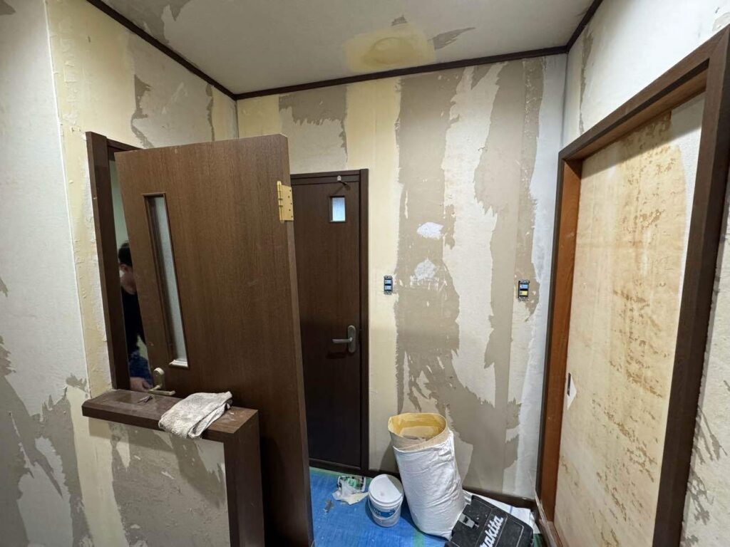 いつものように、汚れたり傷つけてはいけない部分にはしっかりと養生を施し、設備や壁紙をすべて撤去していきます。