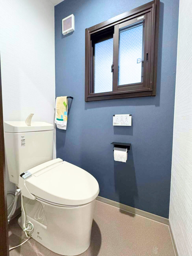 1階のフロアと同じテイストが洗面室やトイレにも取り入れられ、家全体に統一感が生まれています。
