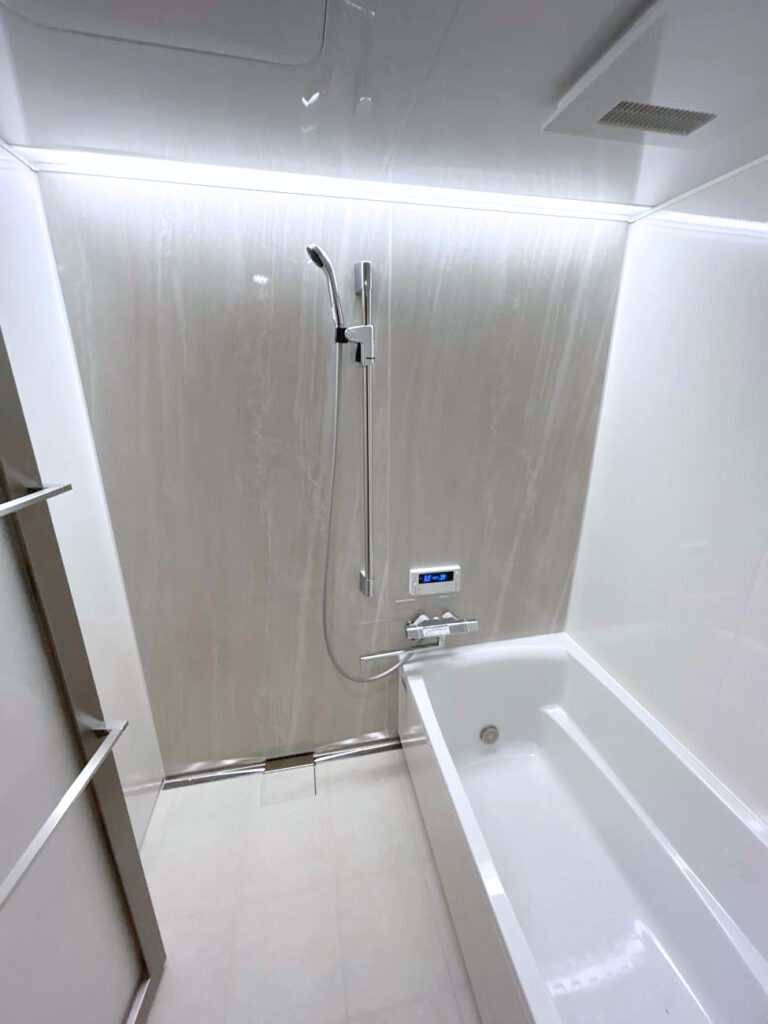 今回は照明にもこだわり、スタイリッシュでスッキリとした浴室に仕上がりました。