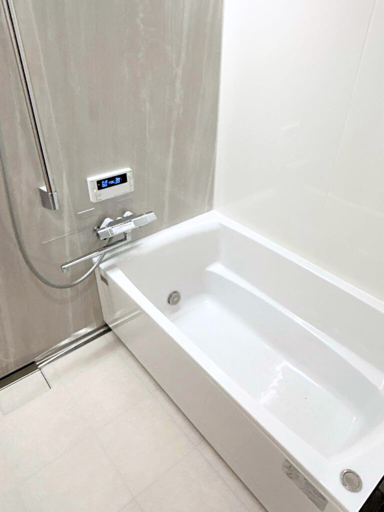 使用されているのは、ホーロー製の浴室パネルとアクリル人造大理石の浴槽。